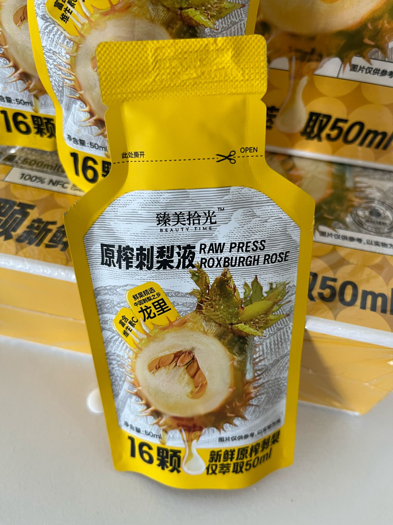 - Ingredients: Yellow Rosa Roxburghii fruit juice